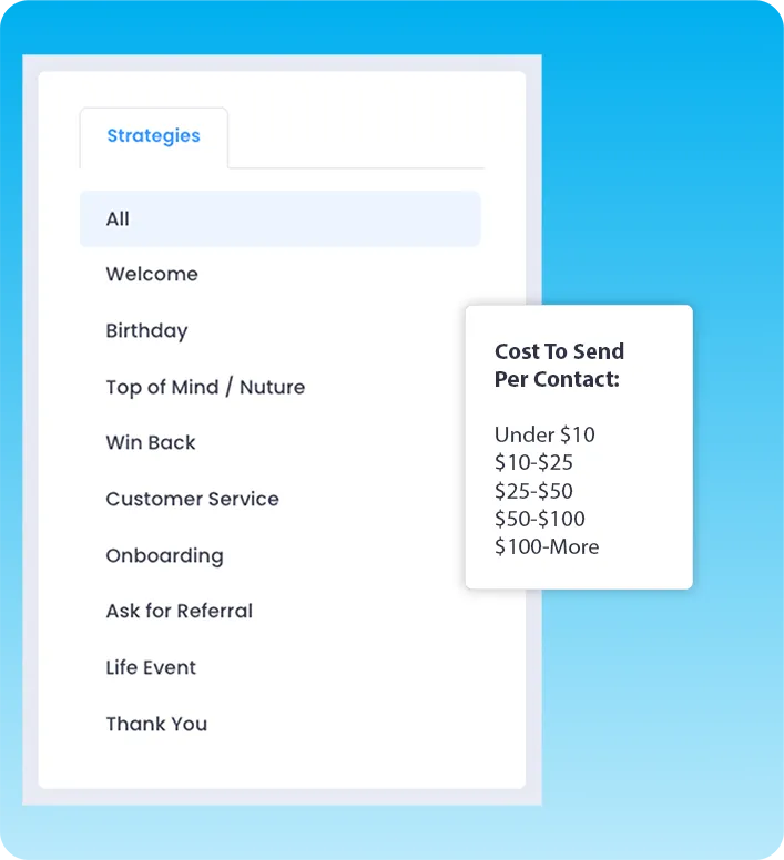 We have hundreds of pre-built gift & card automations that align with any business goal and budget. You can get a campaign up in minutes while maintaining full control of what you send and how much per client.