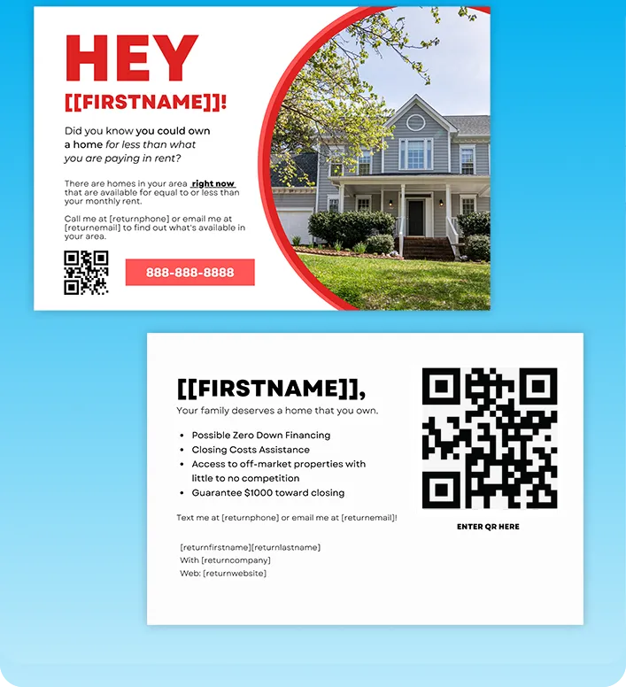 You can easily place dynamic QR codes on your cards that will automatically assign to each unique contact on your list. This means as soon as someone from your list scans your QR code, you'll be notified in real time of THAT person's action by text.