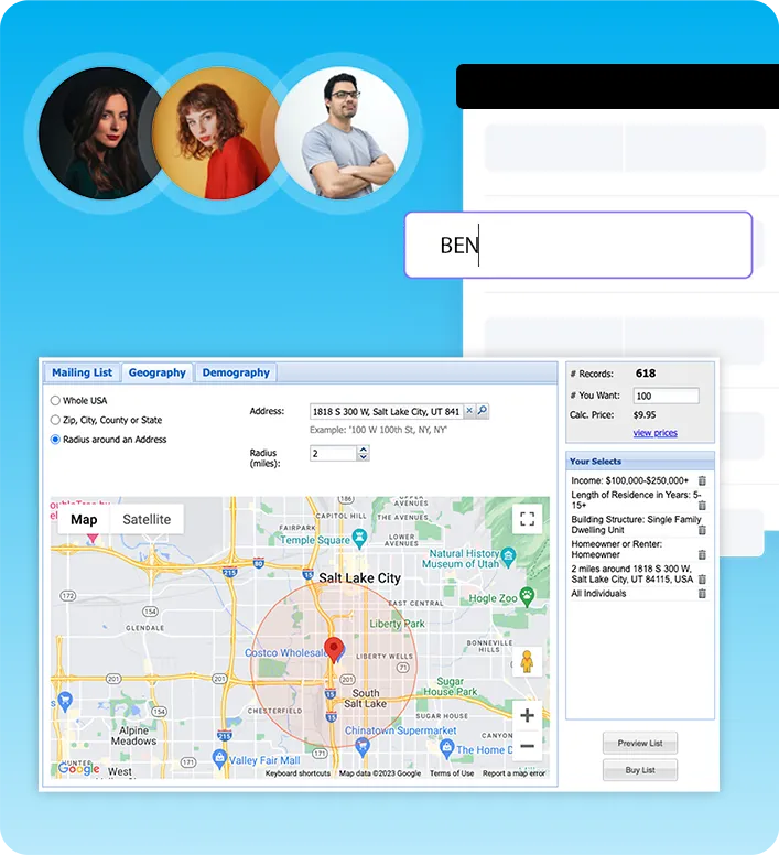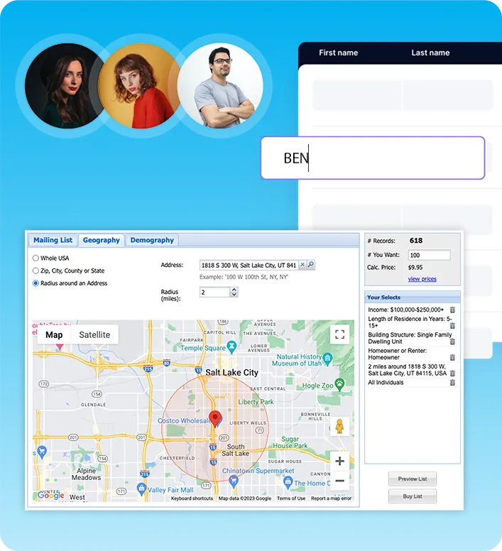 AND... if you don't have a list of clients yet, you can use our system to build a list of potential clients based on any demographics!